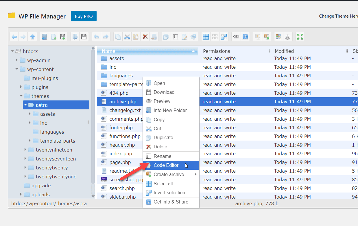 Then, open the themes folder and select the folder you want to modify. In our case, we will edit the Astra theme files.