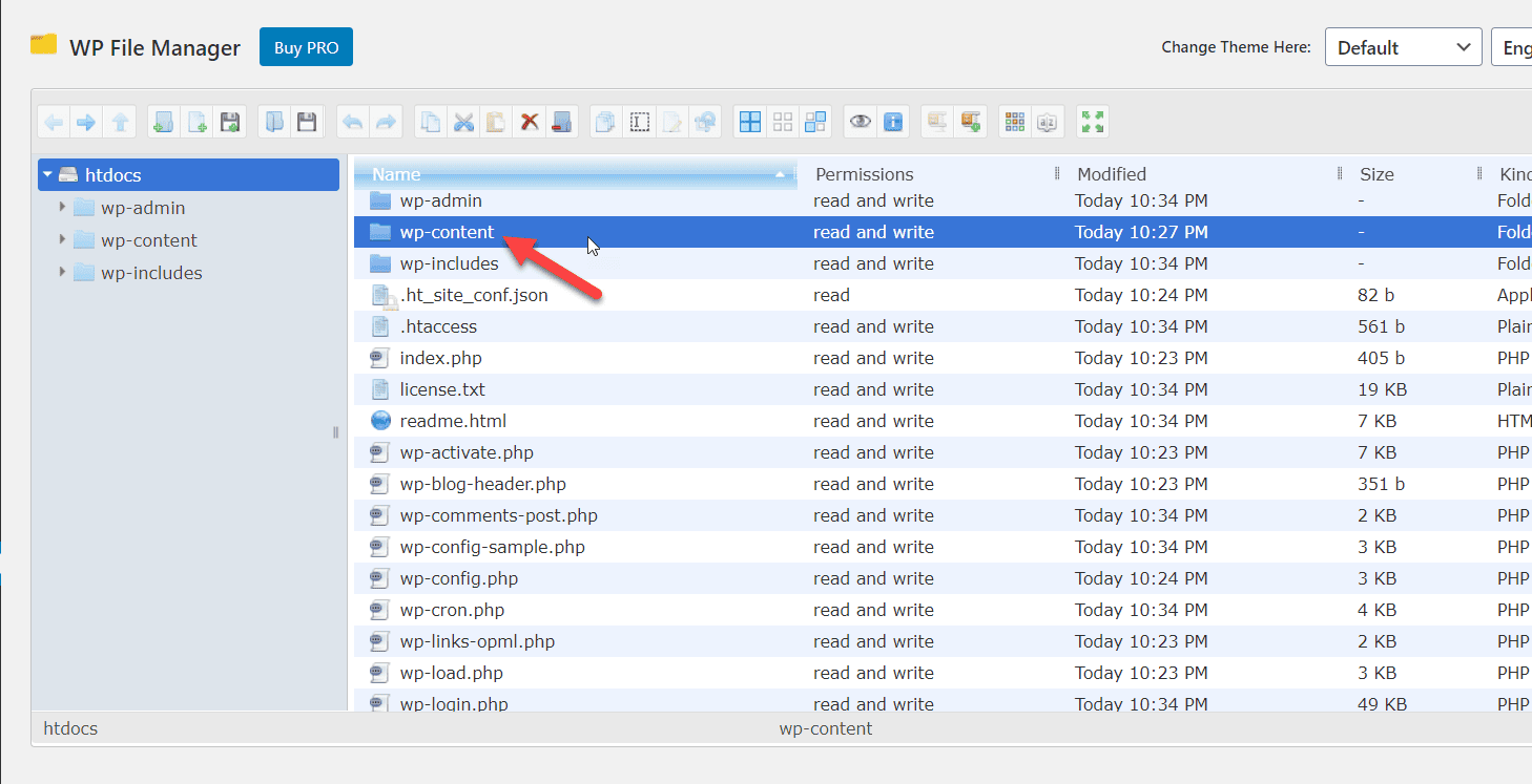Now, open the wp-content directory.