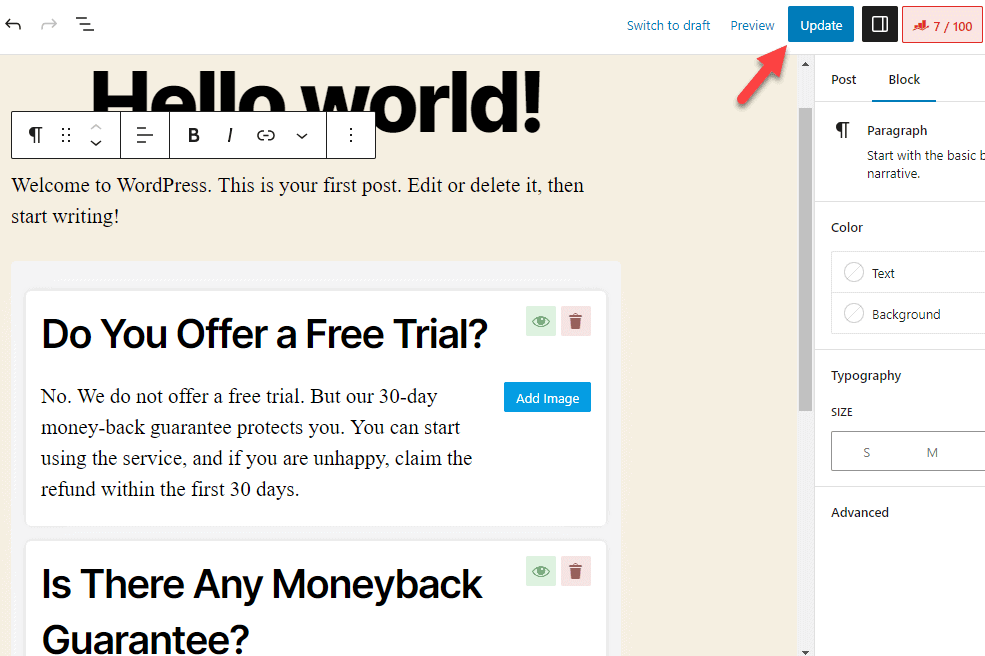 This method is one of the easiest ways to display FAQs in WordPress, but it also has some limitations.